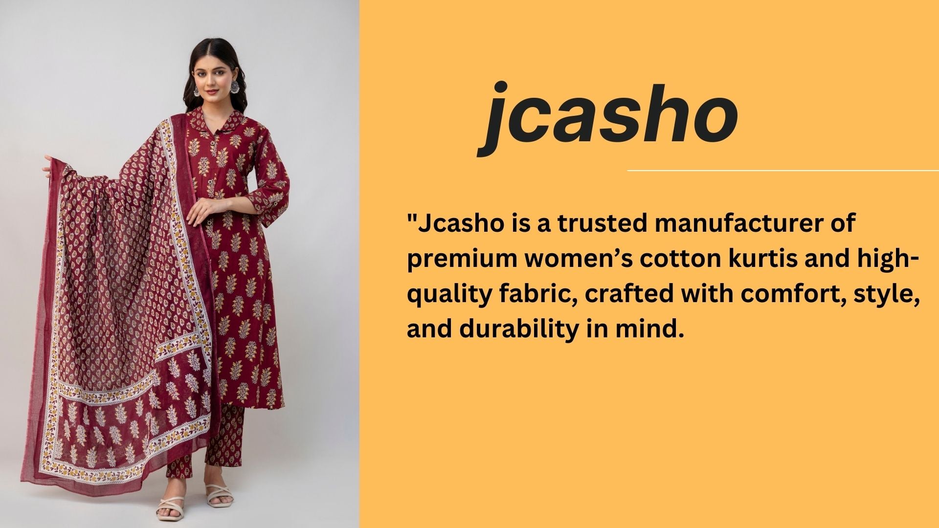 Jcasho is a leading manufacturer & wholesale cotton fabric & Women Kurti supplier in Jaipur, offering premium-quality cotton, khadi, and hand block printed fabrics at competitive prices.